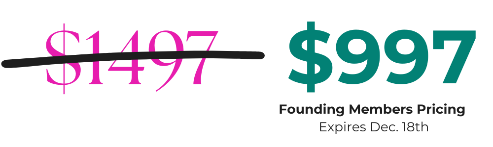 Founding members special rate $997 expires Monday December 18th at midnight EST (Price will go up to $1,497) - Access to all modules, templates, bonuses, 3 months coaching and community.
